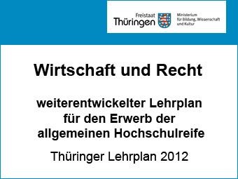 Mit Beginn des Schuljahres 2012/2013 wird in der Klassenstufe 9 nach dem durch das TMBK bestätigtem Lehrplan in Wirtschaft und Recht für die Klassenstufen 9/10 im Gymnasium  unterrichtet.