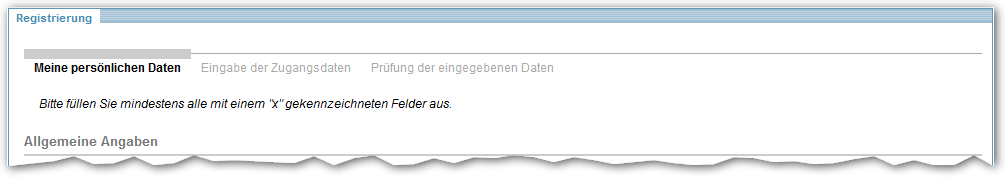 Im Assistenten gibt es sogenannte Pflichtfelder, welche – wenn dort keine Eintragungen vorhanden sind – mit einem gekennzeichnet sind. Um sich erfolgreich registrieren zu können, müssen Sie in diesen Feldern Angaben machen – bei allen weiteren Feldern sind die Angaben freiwillig.