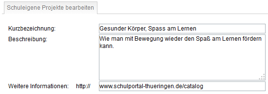 Beispiel (Reiter "Schuleigene Projekte")