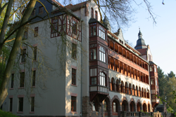 Im Juli 1905 wurde "Schloss Harth", das heutige Hauptgebäude eröffnet. Größten Wert legte Starcke auf die Bestimmung des Hauses als "Gesundungsheim im besten Sinne des Wortes", daher auch die Inschrift über dem Hauptportal "Mens sana in corpore sano - Gesunder Geist in gesundem Körper".