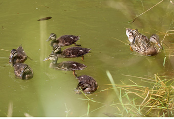 Das Foto hehört zur Serie "Stockenten". Es zeigt eine weibliche Stockente (Anas platyrhynchos) mit Küken. Es gelten die Nutzungsbedingungen der Mediothek und Pixiothek.