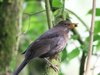Das Foto hehört zur Serie "Amseln". Es zeigt eine Amsel (Turdus merula), auch Schwarzdrossel genannt, eine Vogelart der Familie der Drosseln. Die Männchen sind schwarz gefärbt und haben einen gelben Schnabel, das Gefieder der Weibchen ist größtenteils dunkelbraun. Es gelten die Nutzungsbedingungen der Mediothek und Pixiothek.