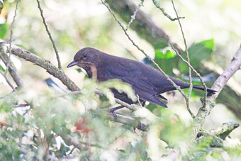 Das Foto hehört zur Serie "Amseln". Es zeigt eine Amsel (Turdus merula), auch Schwarzdrossel genannt, eine Vogelart der Familie der Drosseln. Die Männchen sind schwarz gefärbt und haben einen gelben Schnabel, das Gefieder der Weibchen ist größtenteils dunkelbraun. Es gelten die Nutzungsbedingungen der Mediothek und Pixiothek.