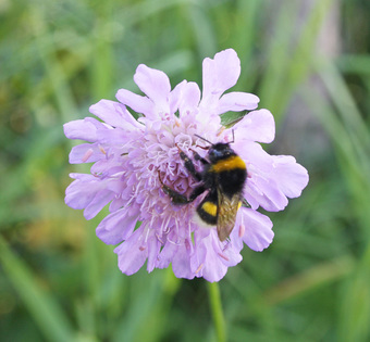 Das Foto hehört zur Serie "Hummeln". Es zeigt eine Dunkle Erdhummel (Bombus terrestris). Sie ist eine schwarze Hummel mit zwei gelben Querbinden und einer weißen Hinterleibspitze. Es gelten die Nutzungsbedingungen der Mediothek und Pixiothek.