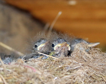 Junge Rauchschwalben nach der Fütterung