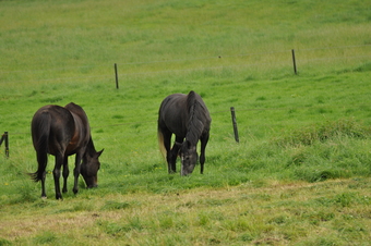 Das Foto gehört zur Serie "Pferde". Es zeigt schwarze Pferde (Rappen) auf der Weide. Das Bild ist unter CC0 lizenziert und kann somit frei verwendet werden.