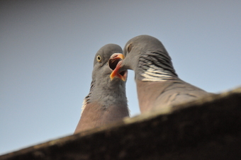 Das Foto gehört zur Serie "Tauben". Es zeigt schnäbelnde Straßentauben. Die Stadttaube oder Straßentaube ist ein Vogel aus der Familie der Tauben (Columbidae). Sie stammt von verwilderten Haus- und Brieftauben ab, die aus der Felsentaube (Columba livia) gezüchtet wurden. Das Bild ist unter CC0 lizenziert und kann somit frei verwendet werden.