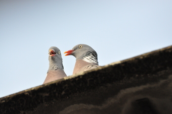 Das Foto gehört zur Serie "Tauben". Es zeigt zwei Straßentauben. Die Stadttaube oder Straßentaube ist ein Vogel aus der Familie der Tauben (Columbidae). Sie stammt von verwilderten Haus- und Brieftauben ab, die aus der Felsentaube (Columba livia) gezüchtet wurden. Das Bild ist unter CC0 lizenziert und kann somit frei verwendet werden.