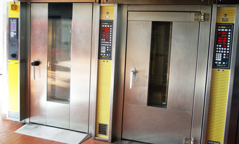 Das Bild zeigt Technik in einer Bäckerei. Zu sehen sind Bäckerei-Backöfen. In einem Stikkenofen können mit Hilfe eines Stikkenwagens Backbleche übereinander bequem be- und entladen werden. Stikkenöfen arbeiten mit Umwälzung von heißer Luft (Konvektion). Das Bild ist unter CC0 lizenziert und kann somit frei verwendet werden.