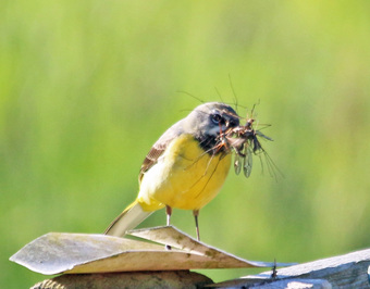 Das Foto gehört zur Serie "Stelzen und Pieper". Es zeigt eine Gebirgsstelze (Motacilla cinerea) oder Bergstelze. Die Gebirgsstelze besiedelt schnell fließende, meist bewaldete Gewässer und ernährt sich vorwiegend von Insekten und deren Larven. Es gelten die Nutzungsbedingungen der Mediothek und Pixiothek.