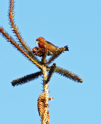 Das Foto hehört zur Serie "Finken". Es zeigt einen Fichtenkreuzschnabel (Loxia curvirostra), eine Vogelart aus der Unterfamilie der Stieglitzartigen und der Familie der Finken. Es gelten die Nutzungsbedingungen der Mediothek und Pixiothek.
