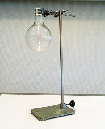 Das Foto gehört zur Serie "Experimente Chemie". Es zeigt einen Rundkolben, der am Stativ zu hoch befestigt wurde. Das Bild ist unter CC0 lizenziert und kann somit frei verwendet werden.