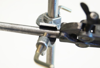 Stativklammer soll auf der Doppelmuffe aufliegen.