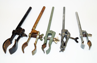Das Foto gehört zur Serie "Experimente Chemie". Es zeigt verschiedene Arten und Größen von Stativklammern. Das Bild ist unter CC0 lizenziert und kann somit frei verwendet werden.