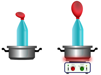 Das Bild gehört zur Serie "Chemie Grafiken". Es veranschaulicht den Versuchsaufbau zur Volumenänderung der Luft bei Temperaturänderung. Die Grafik kann zur Gestaltung von Arbeitsblättern verwendet werden. Das Bild ist unter CC0 lizenziert und kann somit frei verwendet werden.