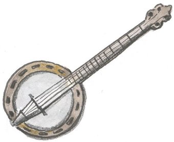 Das Bild gehört zur Serie "Musikinstrumente". Es zeigt ein gezeichnetes Banjo. Es gelten die Nutzungsbedingungen der Mediothek und Pixiothek.