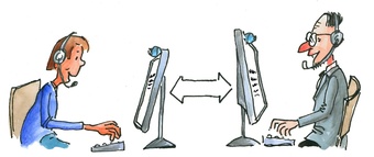 Das Bild gehört zur Serie "Lernformen". Es zeigt ein gezeichnetes Symbolbild für die Lernform E-Learning. Es gelten die Nutzungsbedingungen der Mediothek und Pixiothek.