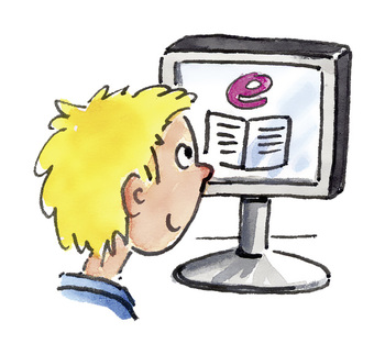 Das Bild gehört zur Serie "Lernformen". Es zeigt ein gezeichnetes Symbolbild für die Lernform E-Learning. Es gelten die Nutzungsbedingungen der Mediothek und Pixiothek.