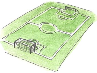 Das Bild gehört zur Serie "Sport". Es zeigt ein gezeichnetes Fußballfeld. Es gelten die Nutzungsbedingungen der Mediothek und Pixiothek.