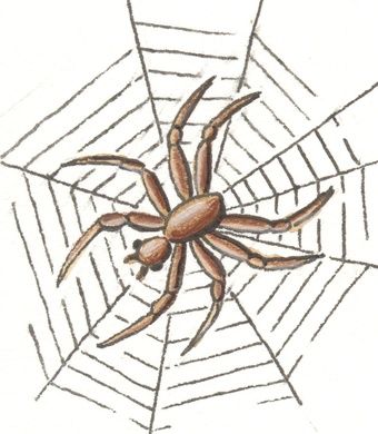 Das Bild zeigt eine gezeichnete Spinne mit Spinnennetz. Es gelten die Nutzungsbedingungen der Mediothek und Pixiothek.