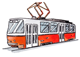 Das Bild gehört zur Serie "Straßenverkehr". Es zeigt eine gezeichnete Straßenbahn. Es gelten die Nutzungsbedingungen der Mediothek und Pixiothek.