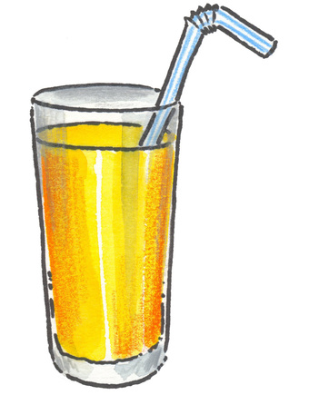 Das Bild gehört zur Serie "Hauswirtschaft". Es zeigt ein gezeichnetes Trinkglas mit Saft und Trinkhalm. Es gelten die Nutzungsbedingungen der Mediothek und Pixiothek.