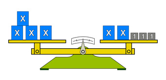 Das Bild gehört zur Serie "Mathematik, Gleichungen". Es veranschaulicht die Lösung einer linearen Gleichung durch Äquivalenzumformung mit dem Bild einer Waage. Zur Gleichung 25 veranschaulichen die Bilder 25-1 bis 25-4 die Umformungsschritte. Das Bild ist unter CC0 lizenziert und kann somit frei verwendet werden.