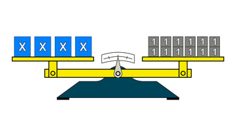 Das Bild gehört zur Serie "Mathematik, Gleichungen". Es veranschaulicht eine lineare Gleichung durch Körper auf einer Waage. Das Bild ist unter CC0 lizenziert und kann somit frei verwendet werden.