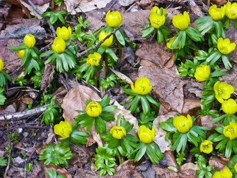 Das Foto gehört zur Serie "Frühblüher". Es zeigt Blüten vom Winterling (Eranthis hyemalis). Die Pflanzengattung Winterlinge gehört zur Familie der Hahnenfußgewächse (Ranunculaceae). Die Blütezeit reicht im Vorfrühling von Februar bis März. Es gelten die Nutzungsbedingungen der Mediothek und Pixiothek.