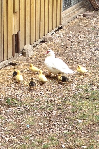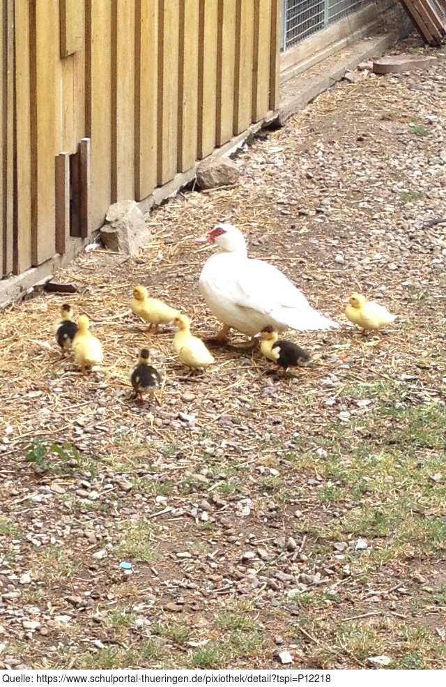 Das Foto gehört zur Serie "Bauernhof". Es zeigt eine Warzenente (auch Flugente genannt) mit ihren Kücken. Es gelten die Nutzungsbedingungen der Mediothek und Pixiothek.