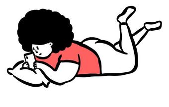 Die Zeichnung "laying-down" aus der Serie "Open Doodles" zeigt eine Frau auf dem Bauch liegend ihr Handy benutzen. Das Bild ist unter CC0 lizenziert und kann somit frei verwendet werden.