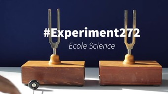 Das Video zeigt ein Experiment mit zwei Stimmgabeln und zwei Resonanzkästen. Das Video ist unter CC0 lizenziert und kann somit frei verwendet werden.