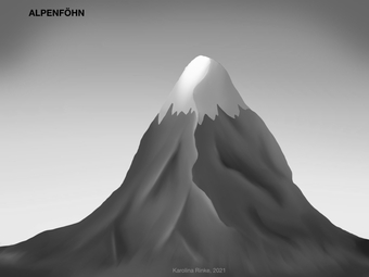 Das Bild gehört zur Serie "Grafische Darstellung Alpenföhn". Das Bild verdeutlicht den Alpenföhn (Föhnwind des Alpenraumes). Bild-Variante: Berg; s/w; unbeschriftet. Es gelten die Nutzungsbedingungen der Mediothek und Pixiothek.