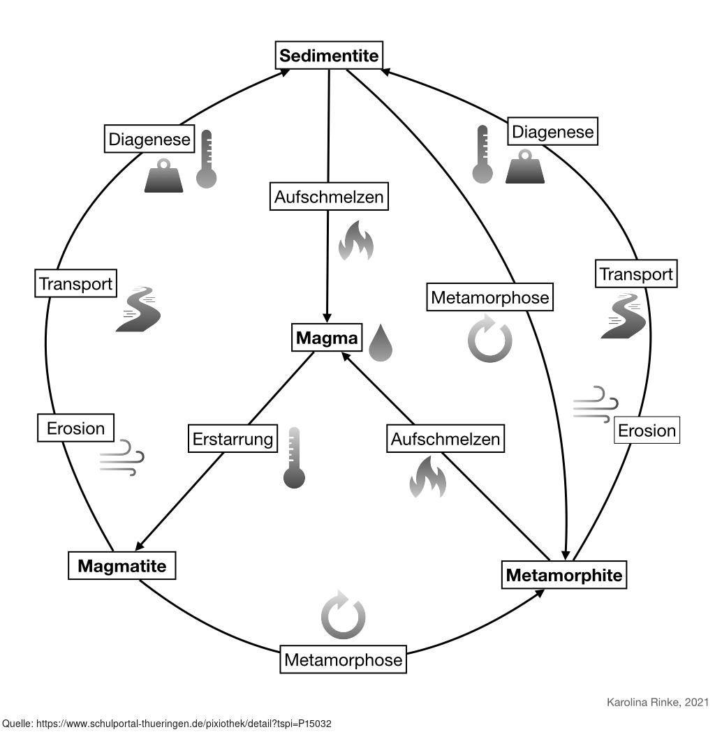 Das Bild verdeutlicht den Gesteinskreislauf. Bild-Variante: farbig; unbeschriftet. Es gelten die Nutzungsbedingungen der Mediothek und Pixiothek.