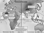 Das Bild verdeutlicht den anthropogenen Treibhauseffekt. Bild-Variante: s/w; teilbeschriftet. Es gelten die Nutzungsbedingungen der Mediothek und Pixiothek.