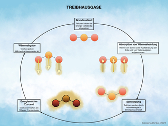 Das Bild verdeutlicht das Thema Treibhausgase. Bild-Variante: farbig; beschriftet. Es gelten die Nutzungsbedingungen der Mediothek und Pixiothek.