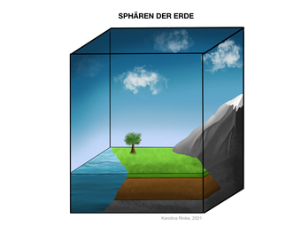 Das Bild verdeutlicht die Sphären der Erde (Hüllenaufbau). Bild-Variante: farbig; unbeschriftet. Es gelten die Nutzungsbedingungen der Mediothek und Pixiothek.