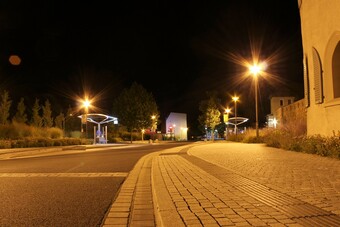 Motiv eines Stadtrundganges durch Pößneck (Ostthüringen) bei Nacht. Blick am Glockentum vorbei zum Busbahnhof. Es gelten die Nutzungsbedingungen der Mediothek und Pixiothek.