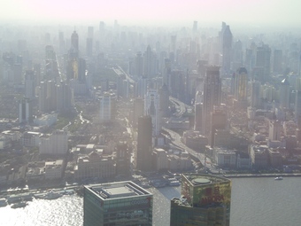 Das Foto gehört zu einer Serie mit 3 Motiven der Stadt Shanghai, aufgenommen im Oktober 2005. Die Fotos liegen jeweils im Original vor (sonniges Wetter, aber dunstig) sowie in einer bearbeiteten Version (Helligkeit herab-, Kontrast heraufgesetzt, Farbtemperatur und -ton verbessert; subjektiver Eindruck). Die Bilder dieser Serie können als Anregung bzw. als Einstieg für das Thema Bildbearbeitung dienen.
