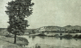 Saaletal bei Kahla mit Dohlenstein, Leuchtenburg und Pfaffenberg, historische Ansicht um 1909
