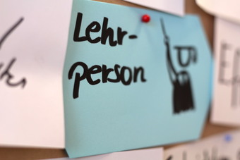 Das Bild zeigt eine Moderationskarte mit der Aufschrift "Lehrperson", fotografiert von Elisabeth Scherer für SeLL, HHU Düsseldorf. Es gelten die Nutzungsbedingungen der Mediothek und Pixiothek.