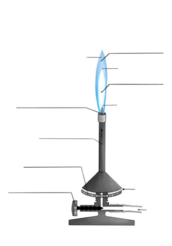 Das Bild verdeutlicht den Aufbau eines Bunsenbrenners. Variante: eine Flamme, farbig; unbeschriftet. Es gelten die Nutzungsbedingungen der Mediothek und Pixiothek.