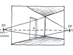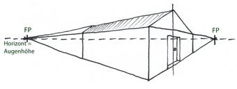 Das Bild gehört zur Serie "Projektionsarten". Es zeigt die Perspektive mit zwei Fluchtpunkten am Beispiel eines Gebäudes. Es gelten die Nutzungsbedingungen der Mediothek und Pixiothek.