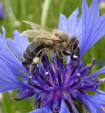 Honigbiene auf der Blüte einer Kornblume