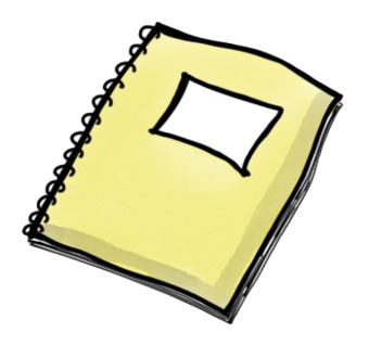 Das Bild zeigt ein gezeichnetes gelbes Heft. Das Bild ist unter CC0 lizenziert und kann somit frei verwendet werden. Es ist neben weiteren Bildern auch hier zu finden: https://moodlelab.moodleschule.de/