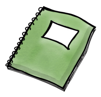 Das Bild zeigt ein gezeichnetes grünes Heft. Das Bild ist unter CC0 lizenziert und kann somit frei verwendet werden. Es ist neben weiteren Bildern auch hier zu finden: https://moodlelab.moodleschule.de/