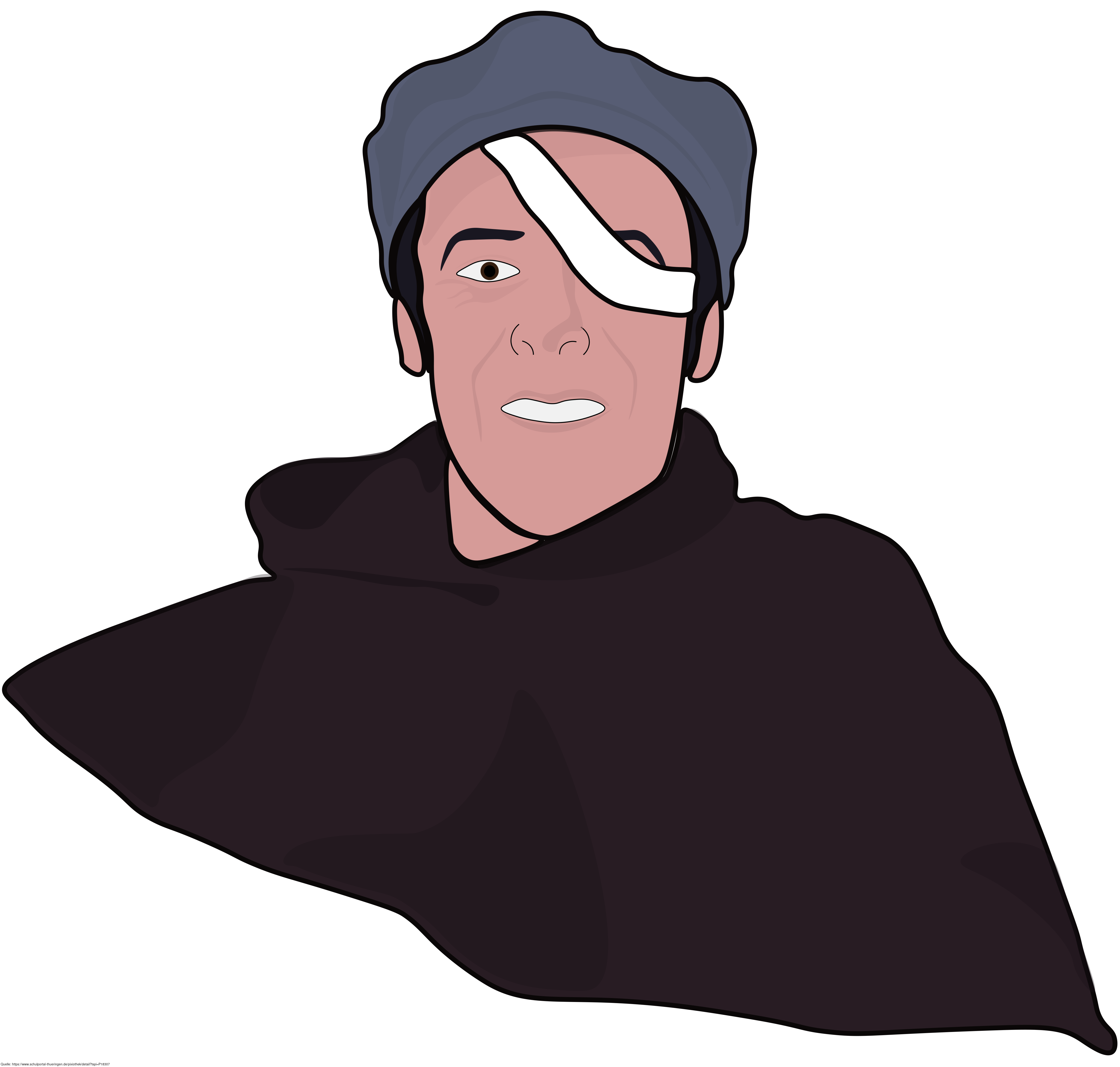 Das Bild zeigt einen gezeichneten Mann mit einem verbundenen Auge. Es stammt aus dem Projekt "Didactica Bavaria Bohemia" - Materialpakete daraus siehe "Verwandte Medien (Auswahl)". Das Bild ist unter CC0 lizenziert und kann somit frei verwendet werden.
