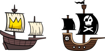 Das Bild zeigt zwei gezeichnete Schiffe - ein königliches Schiff und ein Piratenschiff. Es stammt aus dem Projekt "Didactica Bavaria Bohemia" - Materialpakete daraus siehe "Verwandte Medien (Auswahl)". Das Bild ist unter CC0 lizenziert und kann somit frei verwendet werden.