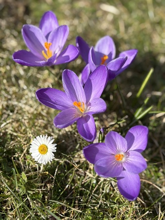Das Foto gehört zur Serie "Frühblüher". Es zeigt Blüten vom Krokus (Crocus) neben einem Gänseblümchen. Es gibt über 200 Krokusarten, die zur Familie der Schwertliliengewächse (Iridaceae) gehören. Es gelten die Nutzungsbedingungen der Mediothek und Pixiothek.