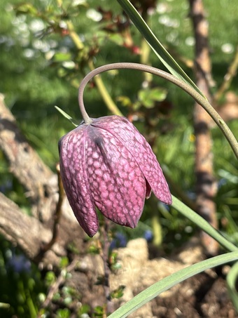 Das Bild zeigt eine Schach- oder Schachbrettblume, auch Kiebitzei genannt, aus der Familie der Liliengewächse. Sie wird als Zierpflanze verwendet.